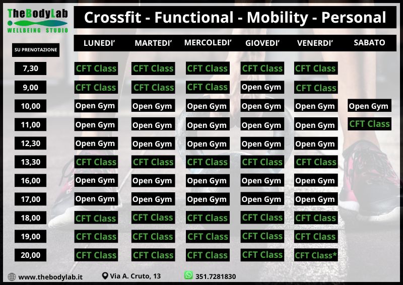 30 CrossFit Class per soddisfare le esigenze orarie di tutta la clientela e vengono organizzati Workshop e/o MasterClass di